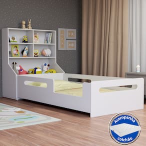 O modelo conta com cabeceira com nichos integrados, perfeita para guardar brinquedos, livros e objetos decorativos, mantendo o ambiente arrumado de forma simples. O conjunto já acompanha colchão no tamanho exato, garantindo encaixe perfeito e mais conforto durante o sono.