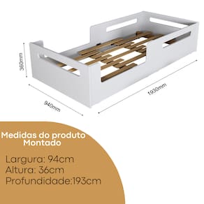 Comprimento: 193 cm Largura: 94 cm Altura da base até o chão: 36 cm