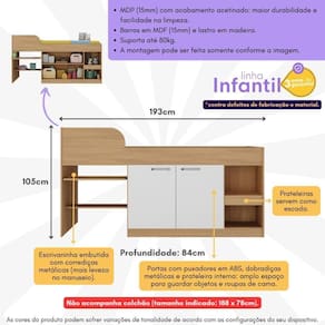 Multifuncional: Possui 2 portas, escrivaninha embutida e prateleiras que viram escada.
