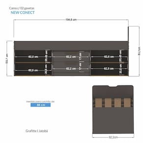 Cama Solteiro New Conect 2 Gavetas - Santos Andirá Uma cama espetacular para quem quer otimizar espaço com muita funcionalidade. A Cama Solteiro New Conect traz em sua estrutura gavetas com corrediças telescópicas e nichos para apoio de objetos, complementando a organização e decoração do seu dormitório. Seu acabamento é exclusivo Finishing Reverse, com uma sensação incrível ao toque. Tudo dentro do mais rigoroso processo de qualidade e de cuidado com o meio ambiente, cuidando de forma sustentável.