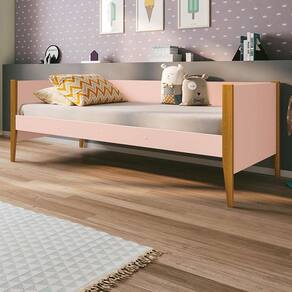 Cama Solteiro Noah Rosa com Pés Amadeirado - Reller
