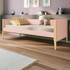 Cama Solteiro Noah Rosa com Pés Madeira Natural - Reller
