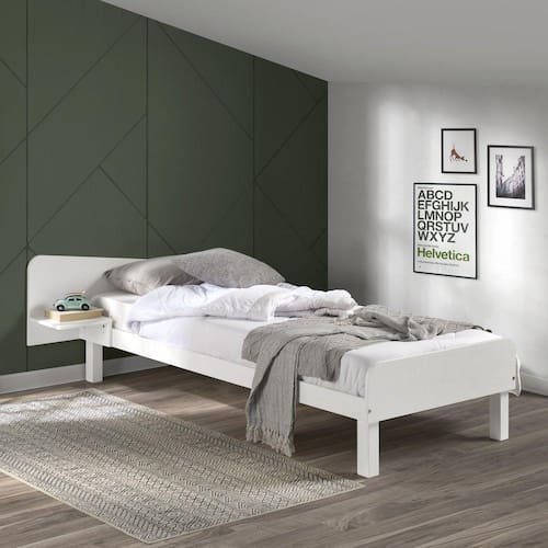 A Cama de solteiro Pampa com mesa de cabeceira 100% em madeira maciça. Possui acabamento em pintura UV e bordas chanfradas para sua segurança. Ela é ideal para ambientes aconchegantes e modernos. Prática e fácil de montar. Acabamento da Prateleira: Pintura Acabamento dos Pés: Pintura Acompanha Cama Auxiliar: Não Acompanha Colchão: Não Altura do Estrado até o Chão: 29,5 cm Altura dos Pés: 27,7 cm Ambiente Principal: Quarto codigo_ean: 7909903080528 Complexidade da Montagem: Média: pode ser montado por mais de uma pessoa e/ou necessite de maior conhecimento para montagem Comprimento: 191,6 cm Cor: Branco Lavado Cor do Produto: Branco Lavado Cor Flex: Não Escala de Brilho: Semi-Brilho Escala de Brilho da Prateleira: Semi-Brilho Extensível: Não Informações Complementares: Possui 2 pés centrais para apoio que tem altura de 27,1cm e não possuem acabamento na cor do produto Itens Inclusos: 1 cama, kit de ferragens e manual de montagem Linha ou Coleção: Pampa Manual de Montagem e Instalação: https://product-hub-prd.madeiramadeira.com.br/742763/documents/1d8ccd76-abc8-43e7-a289-5cb3858c9ca4986055CAMAPAMPA.pdf Material da Prateleira: Madeira Maciça Material do Estrado: Pinus Material dos Pés: Madeira Maciça Material Principal: Madeira Maciça Montagem Flex: Sim, direita ou esquerda Necessita Montagem: Sim Origem do Produto: Nacional Permite a Utilização de Cama Auxiliar: Não Peso: 15 kg Peso Máximo por Prateleira: 2 kg Possui Baú: Não Possui Gavetas: Não Possui Pés: 06 Possui Portas: Não Possui Rodízio: Não Recomendações de Uso, Manutenção e Limpeza: Utilize um pano macio, levemente umedecido com água Sapatas Niveladoras: Não Sistema de Montagem: Parafusos Philips e Allen, Cavilhas, Minifix e Porcas Tamanho da Cama: Solteiro Tamanho do Colchão Indicado (L x C): 88x188 Tipo de Cama: Convencional Tipo de Colchão: Solteiro Tipo de Estrado: Fixo Tipo de Madeira Maciça: Pinus Tipo de Madeira Maciça da Prateleira: Pinus Tipo de Madeira Maciça dos Pés: Pinus Ean: 7909903080528