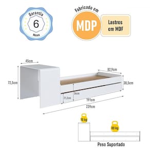 O(a) Cama Solterio Infanto Juvenil com Escrivaninha e Cama Auxiliar Branco - Completa Móveis é produzido em MDP na escala de brilho Fosco, e possui um grau de dificuldade de montagem: Médio.