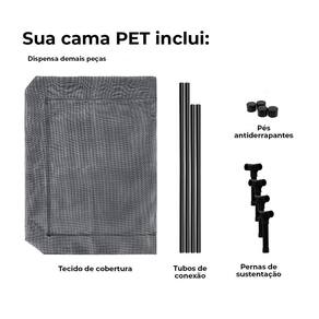 A Cama Elevada para Cachorro e Gato é de fácil montagem. Basicamente, basta conectar o tecido de nylon às barras de alumínio e encaixar as pernas de alumínio nas barras, é bem intuitivo e rápido. Além disso a praticidade de montagem permite que você leve para qualquer lugar que seu pet vá.