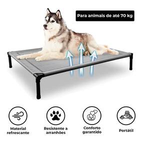 Cama Suspensa Pet Tamanho Gg Para Cães E GatosConforto, Durabilidade e PraticidadeA Cama Pet Elevada visa o bem-estar do seu bichinho, ao mesmo tempo que oferece resistência e facilidade de montar. O tecido respirável de qualidade aliado ao fato de ficar suspensa do chão proporciona uma maior circulação de ar, gerando refrescância e mais conforto ao pet. A altura da Cama Elevada para Cachorro ajuda a prevenir também a formação de calos e dores nas articulações dos cães idosos com displasia ou excesso de peso, possibilitando tranquilidade na hora do descanso.ALGUMAS PERGUNTAS A Cama Pet Elevada é ideal para você que tem cachorro ou gato, ajuda o seu pet a ter um sono melhor pois, a altura em relação ao chão e o tecido respirável, proporcionam um sono mais agradável.O tecido é feito com um material que faz com que ele seja resistente a mordidas e arranhões do seu pet.A Cama Suspensa Pet oferece um maior conforto ao seu bichinho, justamente pelo fato de ser elevada do chão. Os principais benefícios dessa Cama Pet são: - Ela evita o desenvolvimento de problemas nas articulações de seu animal, pois ele não precisa se abaixar para deitar. - Ela faz com que o Pet tenha um sono melhor em dias quentes, uma vez que ele ficará a 15cm do chão. A Cama Elevada para Cachorro e Gato é de fácil montagem. Basicamente, basta conectar o tecido de nylon às barras de alumínio e encaixar as pernas de alumínio nas barras, é bem intuitivo e rápido. Além disso a praticidade de montagem permite que você leve para qualquer lugar que seu pet vá.Características Cama Suspensa Pet:- Tecido resistente a mordidas e arranhões- Evitar pontos de calor, possibilitando assim maior frescor ao seu pet- Maior conforto e reduz o desgaste das articulações do bichinho- Fácil de montar e desmontar, acompanha manual de montagem- Limpeza rápida, simples e fácil- A Cama Elevada Pet suporta animais de até 70 kg- O material das pernas é alumínio- Tecido de SustentaçãoEspecificações Cama Suspensa Pet:Indicação: Cachorro, GatoMaterial: Nylon, Pernas de AlumínioRaça: Raças Pequenas, Raças Médias, Raças GrandesIdade: Filhotes, Adultos, idososDimensões: 104cm x 77cm x 18cmItens Inclusos:- 4 Pernas de alumínio- 4 barras de alumínio- 1 tecido de nylon