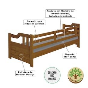 Cama Zurique Mona Solteiro Madeira Maciça com Acabamento Premium Castanho - Marrom