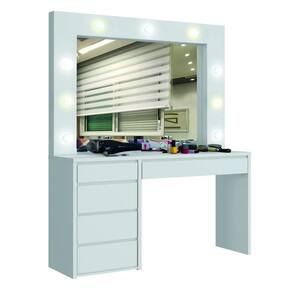 Camarim com Lâmpadas de LED - Berlim-Branco - Mavau Móveis   A Camarim Berlim é o ambiente perfeito para quem quer um cantinho especial para se arrumar diariamente. Além de lindo e possuir um desing moderno, é feito em MDF com o tampo e as laterais em 25mm, o que traz resistência e durabilidade para o seu móvel, lâmpadas bivolt em LED, inclusas, e gavetas com corrediças telescópicas e divisórias internas. Aproveite já esse luxo de camarim!   Faz parte do anúncio: 1 Camarim com Lampadas de LED - Berlim - Mavau Móveis Obs: Objetos decorativos não acompanham o produto.   Particularidades da Penteadeira: Características - Penteadeira MDF - Possui 5 gavetas com corrediças telescópicas - 9 lâmpadas bivolt - Interruptor com tomada embutido - Madeira Ecologicamente Correta - Baseado em conceitos sustentáveis   Dimensões da Penteadeira Altura: 1,84 metros Largura: 1,36 metros Profundidade: 45,8 centímetros   Informações Importantes: - Produtos podem apresentar diferenças de tonalidades entre a foto na tela e o produto real, devido a calibração de cor de tela.  - Limpar com flanela ou pano macio. Não utilizar álcool. Não utilizar produtos abrasivos ou corrosivos. - Nós prezamos pela qualidade da entrega em primeiro lugar, trabalhamos com transportadoras altamente selecionadas e os melhores materiais de embalagem.. -.Todos os produtos vão desmontados, é necessário a montagem por um montador profissional. Não responsabilizamos pela montagem. - Objetos de decoração não incluso. - Certifique-se de que o produto caiba em elevadores e vãos de escadas, não fazemos içamentos ou desmontagens de produtos. Quaisquer despesas deste tipo ficam a cargo do cliente. - Garantia de 3 meses contra defeitos de fabricação.