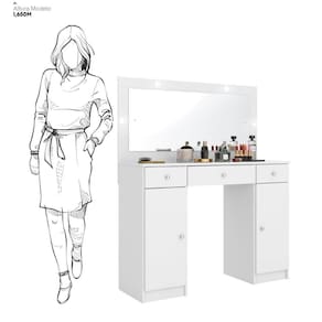 Transforme seu autocuidado com a Penteadeira Camarim Viena! Com gavetas e divisórias colmeia para organizar maquiagens e acessórios, ela oferece compartimentos para tudo, de hidratantes a secadores. O espelho com lâmpadas de LED garante a iluminação perfeita. Seu design em linhas retas se adapta a qualquer ambiente. Complemente seu espaço com a Penteadeira Camarim Viena!