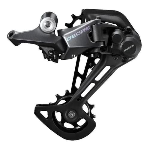 Desenvolvido para o novo sistema de 12 velocidades, o câmbio traseiro shimano deore rd-6100 sgs 12v suporta pinhões com quantidade mínima de 10 dentes até o máximo de 51 dentes no pinhão maior, garantindo muito mais versatilidade para o uso misto em mountain bikes de diferentes modalidades. Construído com cage curto, oferece mais proteção contra batidas e melhor aerodinâmica, bem como um design mais eficiente nas roldanas, garantindo ainda mais maciez para as trocas de marchas e deslocamento da corrente da bicicleta. Seu acionamento, torna as trocas de marchas mais precisas e macias com o câmbio traseiro shimano deore rd-m6100 sgs 12 velocidades, graças às suas roldanas com 13 dentes e perfil baixo que geram menor tensão da corrente em marchas baixas, além de uma composição ideal para suportar as mais variadas condições das estradas em sua fabricação de aço inoxidável e alumínio, que garante leveza e resistência contra os impactos, corrosões e atritos, favorecendo assim, a durabilidade e a qualidade nas trocas das marchas. Modelo: rd-m6100 sgs Design de perfil baixo - muito mais proteção contra impactos nas modalidades mais extremas e maior precisão nas trocas de marchas Roldanas de câmbio com 13 dentes - maiores, favorecem a passagem da corrente com menos acúmulo de sujeira e mais eficiência Tecnologia hyperglide+® - melhor encaixe da corrente, com menos ruído e mais suavidade nas trocas de marchas Sistema shimano shadow rd+® - maior estabilização da corrente durante o uso nos terrenos mais difíceis Compacto - menor tensão da corrente em marchas mais baixas, ideal para o máximo em desempenho Combinação mais ampla - faixa de trabalho ideal para 12 velocidades de pinhões 10 à 51 dentes Peso aprox.: 355g Marca: shimano Ficha técnica - Quantidade de velocidades: 12v - Quantidade máxima de dentes: 51T - Quantidade mínima de dentes: 10T