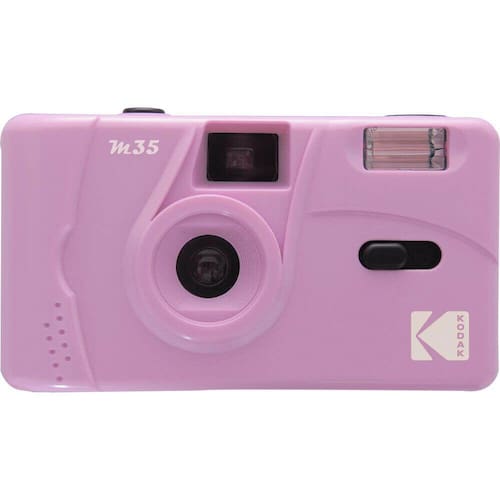 A camera de filme M35 35 mm com flash da Kodak é uma pequena câmera de filme reutilizável com flash embutido. Esta câmera possui uma lente de foco fixo, enrolamento e rebobinamento manual do filme e um botão liga/desliga para o flash.