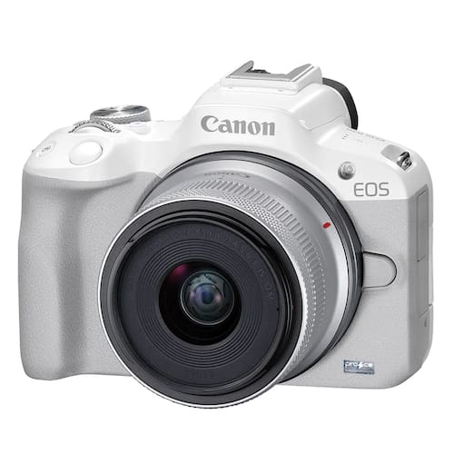 - Modelo: EOS R50 Mirrorless Branca com Lente Canon RF-S 18-45mm f/4.5-6.3 IS STM