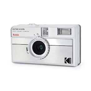 KODAK Pacote de câmera EKTAR H35N de meia moldura com película Kodak Ultramax 400/24EXP de 35 mm (prata listrada, pacote) - ? Filtro de estrela embutido: fotografa pequenas fontes de luz para criar um reflexo de quatro feixes em pontos de luz. - Lente de vidro revestida e melhorada: um elemento da lente de vidro aguça a clareza das imagens. - Função da lâmpada (longa exposição): ajuda a capturar o rastro de objetos em movimento, principalmente à noite. - Orifício do tripé: usa um tripé para manter sua câmera estável para suportar fotografias de longa exposição. - Película, bateria AAA, liberação de cabo e tripé não estão incluídos no produto.