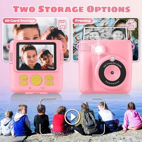 -?Câmera instantânea segura para crianças?A câmera instantânea digital usa a tecnologia de impressão térmica sem tinta, você pode tirar fotos facilmente sem adicionar tinta. 3 rolos de papel para impressão, cada rolo de papel térmico pode imprimir cerca de 75 fotos. Fornecemos adesivos e caneta colorida para crianças decorarem fotos em preto e branco, estimulando sua imaginação e criatividade.