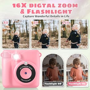 - 📷?Câmera impressa multifuncional?A câmera infantil não só suporta gravação de 24 MP, gravação e reprodução de vídeo 1080P, mas também possui captura contínua, fotos com lapso de tempo, zoom de ampliação de 16x, 8 efeitos de espelho, 18 molduras para fotos, 5 filtros e um reprodutor de música, 4 jogos de quebra-cabeça ect. Ajude as crianças a capturar belos momentos e a se tornarem escritores de vida.