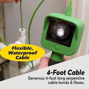 Câmera e Cabo à Prova D'Água: Ideal para ambientes úmidos, como ralos e tubulações, o cabo e a câmera são resistentes à água e possuem uma luz LED integrada para iluminar locais escuros.