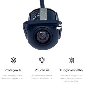 - Design Prático: O formato "tartaruga" da câmera é compacto e versátil, ideal para uso como câmera de ré ou internamente.