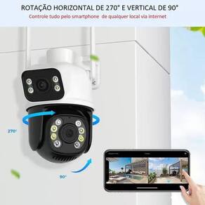 A Câmera de Segurança 2 em 1 Fixa + Móvel App V380 Pro é a escolha perfeita para monitorar sua casa, escritório ou empresa em tempo real. Com duas câmeras em uma, você terá uma câmera bullet com foco fixo e outra PTZ com rotação de até 270 graus. Além disso, a câmera possui armazenamento em cartão de memória de até 128GB não incluso para você guardar todas as gravações.