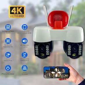 Você pode gravar áudio com a sua voz personalizada para espantar intrusos, com detector de movimento e a sua voz gravada, e ao passar o intruso a câmera vai reproduzir sua voz gravada de até 10 segundos.