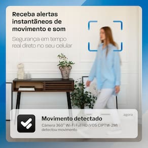 A Câmera Inteligente 360° Velds combina mobilidade, segurança e praticidade no dia a dia. Com rotação remota Pan & Tilt, detecção de movimento e som, rastreamento automático e visão noturna infravermelha, ela garante monitoramento completo mesmo no escuro. Visualize tudo em Full HD, fale com quem estiver no local via áudio bidirecional e receba alertas pelo app Velds. Ideal para casas, escritórios e ambientes internos que exigem controle total na palma da mão.