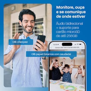 • Monitoramento Interno com Movimento Remoto (Pan & Tilt): Controle a direção da câmera pelo app e acompanhe cada cantinho do ambiente. Com rotação horizontal e vertical, ela gira para onde for preciso — ideal para ficar de olho em momentos importantes, mesmo à distância.
