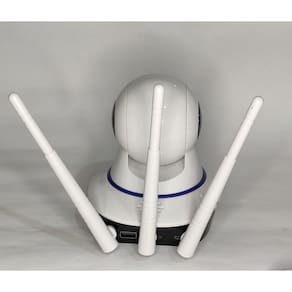Nova câmera ip com três antenas para melhor visualização de imagens através da internet ou celular.