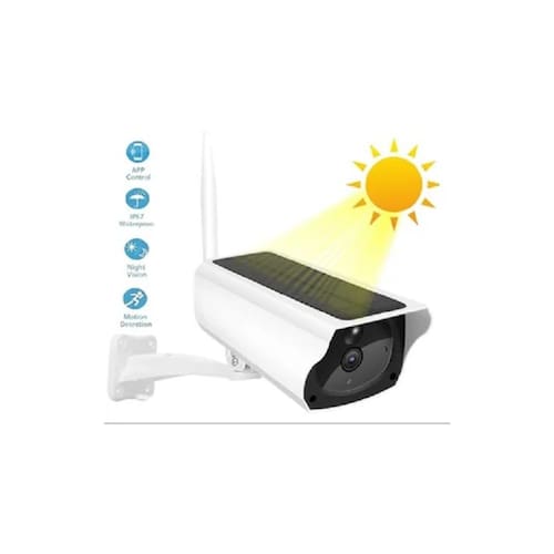Câmera de segurança solar com visão noturna e sensor de movimento Câmera solar de segurança externa: adotamos uma aparência única de monitoramento esférico, carregamento solar, economia de energia e proteção ambiental; Material impermeável ABS/IP66, resistência ao calor, resistência a sorvetes. 100% sem fio. Você só precisa conectar a câmera de segurança PTZ a uma rede Wi-Fi no APP e, em seguida, monitorar remotamente sua casa por meio do APP. Esta câmera de segurança externa é alimentada por energia solar, sem necessidade de carregar após a instalação. (Somente 2.4G WIFI) Sensor de movimento PIR embutido, sensor de movimento de alta sensibilidade, esta câmera de segurança operada por bateria suporta alertas e gravações instantâneas. Esta câmera de segurança sem fio pode girar 355° na horizontal e 120° na vertical. Suporta detecção humana, não é ativado ao detectar animais. Iluminando holofotes do anoitecer ao amanhecer, este design de luz solar com 6 luzes LED automaticamente à noite. Com baterias recarregáveis de 2600 mAh, ele pode acender por mais de 5 dias, mesmo em dias chuvosos. Vida útil de mais de 50.000 horas O cartão SD e o armazenamento em nuvem são opcionais\ nSuporta armazenamento local de cartões TF de 128 GB e armazenamento em nuvem para evitar o risco de perder seu cartão TF. Conexão WiFi 2.4G confiável e incrivelmente fácil de configurar: configuração rápida de WiFi por meio do aplicativo .