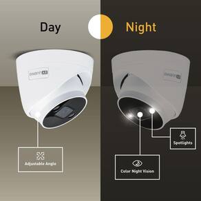 - Visão noturna colorida: os holofotes com sensor de alta potência fornecem visibilidade clara de pessoas, objetos e atividades de até 50 pés/15 m, oferecendo cores vibrantes mesmo no escuro.