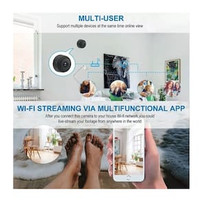 Câmera APP V380 Full HD 1080: com resolução HD 1080P de 25 quadros por segundo. Lente grande angular de nível de 150°, o vídeo ao vivo pode ser visualizado via smartphone iOS/Android, tablet, Macc ou PC com Windows. Perfeito para a casa, escritório ou família como empregada doméstica ou babá. -Formato de vídeo: AVI\ N-Número de quadros: 25\ N-Ângulo de visão: 150 graus\ N-Distância da câmera de detecção esportiva: 6 metros em linha reta\ n-Iluminação máxima: 1 lux\ NTempo de gravação contínua: cerca de 1 hora Consumo de energia: 240mA/3,7 V Tipo de cartão de memória: cartão TF (não incluído) -Software de reprodução: VLC Player/SM Player-Sistema operacional do computador: Windows/Macc OS X-Mobile sistema: -Navegador web Android/iOS: IE7 e superior chrome firefox safari, etc. -Para segurança em casa/escritório, fotografe belas paisagens na estrada com ângulo amplo de 150°\ N suporta visão noturna, tela e gravação em tempo real infravermelho de 6 peças\ n-HD 1080p, câmera IP sem fio WiFi\ n-Ultra pequena e visível, fácil de esconder embaixo da mesa. Sob a parede, sob o teto, existem ímãs poderosos em todos os lugares.- Bateria USB recarregável embutida de grande capacidade, cerca de 1-3 horas de carregamento Suporte multiplataforma (Android, iOS, Windows, Macc OS) e multiusuário (celular e computador).