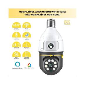 Câmera de segurança, Vigilância Lente Dupla Lâmpada WiFi Câmera de Segurança Lâmpada Wi-Fi com Lente Dupla Monitore seus ambientes com discrição e eficiência com a Câmera de Segurança em formato de lâmpada, equipada com lente dupla para uma cobertura ampla e detalhada. Ideal para uso residencial ou comercial, ela se conecta via Wi-Fi e pode ser acessada pelo celular em tempo real.