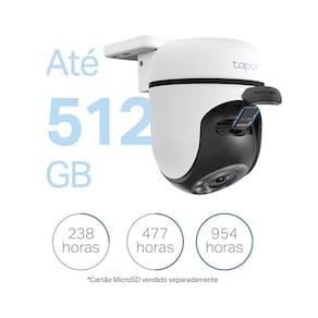 Armazenamento Local e na Nuvem: Salve seus momentos importantes em cartão microSD (até 512 GB) ou assine o Tapo Care para serviço em nuvem.