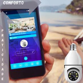 Câmera lâmpada wi-fi ip de segurança A câmera lâmpada wi-fi ip de segurança é a solução ideal para monitorar a sua casa ou empresa. Com instalação fácil e rápida, basta conectá-la em um bocal de lâmpada comum. Oferece visão em tempo real, controle de movimentação e zoom pelo celular, além de luz e áudio bidirecional. Possui alta resolução full hd 1080p e detector de movimento que envia notificações diretamente para o seu celular.