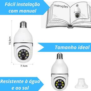 A câmera lâmpada wi-fi ip de segurança é a solução ideal para monitorar a sua casa ou empresa. Com instalação fácil e rápida, basta conectá-la em um bocal de lâmpada comum. Oferece visão em tempo real, controle de movimentação e zoom pelo celular, além de luz e áudio bidirecional. Possui alta resolução full hd 1080p e detector de movimento que envia notificações diretamente para o seu celular.