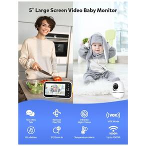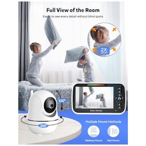 Desfrute de um monitor de bebê de alta qualidade com tela LCD, oferecendo vídeo e áudio cristalinos. A câmera possibilita rotação de 355 graus, inclinação de 120 graus e zoom de 2X até 304 metros, garantindo visibilidade total de todos os ângulos e tranquilizando os pais. Com uma bateria recarregável de 3500mAh, tenha até 30 horas de vida útil da bateria no modo VOX (Voz Ativada) e 10 horas com a tela ligada. O monitor ativa a tela automaticamente ao detectar sons do bebê, economizando energia enquanto o mantém informado. Comunique-se remotamente com seu bebê usando a função de áudio bidirecional. O monitor possui também 8 canções de ninar para ajudar a acalmar seu bebê, reduzindo o desconforto e fortalecendo o vínculo. Com visão noturna infravermelha, este monitor permite que você veja claramente seu bebê durante o dia ou a noite. O sensor de temperatura fornece alertas se o ambiente estiver muito quente ou muito frio, garantindo um ambiente confortável para seu bebê. Conexão segura sem WiFi com tecnologia FHSS em um canal seguro de 2,4GHz, garantindo privacidade e segurança sem depender de WiFi ou aplicativos. Transmita vídeo e áudio ao vivo com segurança, sem o risco de hacking ou violações de privacidade.