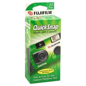Disponível em embalagem única ou dupla. Carregado com filme Fujicolor de 400 velocidades, reprodução de cores superior, alcance do flash de até 10 pés, flash contínuo recarrega automaticamente para sua próxima foto, lente de foco fixo para fotos nítidas e claras, compacta e fácil de usar