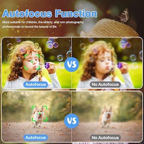 ?Foco automático e fácil de usar?Esta mini câmera digital compacta com cartão SD tem uma função de foco automático que é útil para os fotógrafos se concentrarem mais em capturar a cena momentânea do objeto. É muito leve e pequeno, menor que um smartphone, você pode facilmente colocá-lo no bolso e carregá-lo a qualquer hora e em qualquer lugar. Esta câmera digital de apontar e disparar é muito fácil de operar e simples de controlar, muito adequada para idosos, adolescentes, crianças e estudantes.