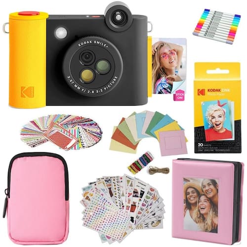 Pacote de presente para câmera digital de impressão instantânea e impressora fotográfica KODAK Smile+ 2 em 1 + estojo + papel fotográfico adesivo 2x3 Zink 2x3 + álbum + conjuntos de adesivos + molduras suspensas + marcadores - Preto