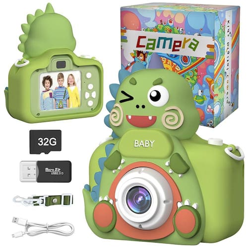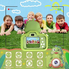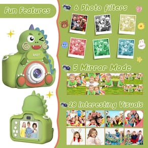 - 📸?Design seguro e durável?: A câmera digital infantil é feita de materiais não tóxicos e atende aos padrões de segurança, garantindo o bem-estar das crianças enquanto elas gostam de usar a câmera. A câmera também possui uma capa protetora de silicone que oferece proteção adicional contra quedas e solavancos acidentais. O design fofo de dinossauro de uma câmera infantil pode capturar a atenção de uma criança e tornar a câmera mais agradável e envolvente para ela usar