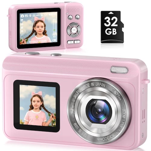 - Câmera digital com tela LCD dupla atualizada - Alterne facilmente entre selfies e paisagens com o design LCD de tela dupla. Desfrute de zoom de 18X, 20 filtros, lapso de tempo, anti-vibração, equilíbrio de luz, modo burst, foco automático e flash. Perfeito para retratos, cenas de ação e momentos criativos — liberando imaginação ilimitada