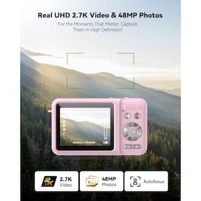 UHD de 2,7 mil e fotos de 48 MP - capture detalhes impressionantes em vídeos de 2,7 mil e fotos de 48 MP. Esteja você gravando aventuras ou criando conteúdo para mídias sociais, esta câmera digital sempre oferece resultados vibrantes e nítidos