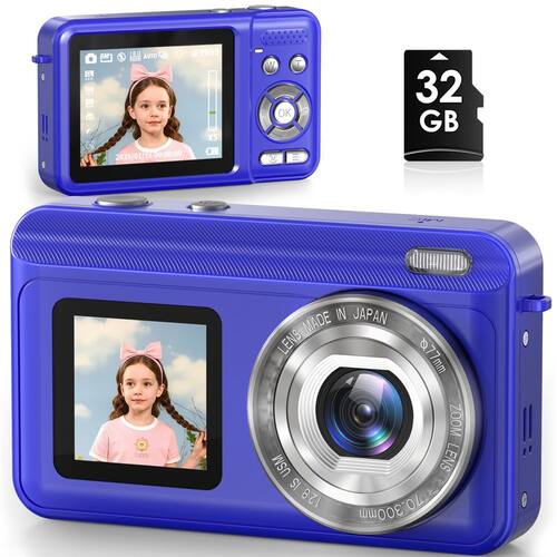 - Câmera digital com tela LCD dupla atualizada - Alterne facilmente entre selfies e paisagens com o design LCD de tela dupla. Desfrute de zoom de 18X, 20 filtros, lapso de tempo, anti-vibração, equilíbrio de luz, modo burst, foco automático e flash. Perfeito para retratos, cenas de ação e momentos criativos — liberando imaginação ilimitada