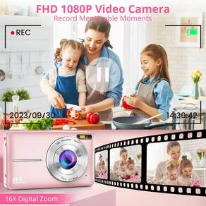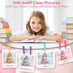 : Esta câmera digital de apontar e disparar captura imagens FHD de 44 MP e vídeo 1080P, produzindo cores is com detalhes vívidos e claros. Com um zoom digital de 16x e 20 filtros diferentes, esta câmera digital para crianças permite capturar imagens nítidas e claras, mesmo à distância, e oferece diferentes experiências fotográficas.