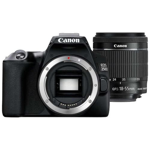 Câmera Fotográfica EOS 250D e Lente 18-55mm Canon Preta A Câmera EOS 250D da Canon é uma DSLR leve e versátil que apresenta um sensor de 24,1 megapixels, processador de imagem DIGIC 8 para excelentes capturas de foto e vídeo em alta resolução, nitidez e clareza de imagens, conectividade wi-fi e bluetooth para o fácil compartilhamento de conteúdo quando emparelhada com seus dispositivos móveis, ecrã tátil de ângulo variável para melhor desempenho e enquadramento, bem como a versatilidade da objetiva 18-55mm que oferece estabilização de imagem para fotografias e vídeo, elemento asférico de alta precisão para reduzir distorções cromáticas em toda a faixa de zoom e proporcionar os melhores resultados. Especificações: Cor: Preta Marca: Canon Relação de aspecto: 3:2 Temperatura operacional: 0 – 40 °C Dimensões: 122,4 x 92,6 x 69,8 mm Sensor: CMOS de 22,3 mm x 14,9 mm Pixels Efetivos: Aprox. 24,10 megapixels Total pixels: Aprox. 25,80 megapixels Filtro "Low-Pass": Incorporado/fixo Sistema de limpeza integrado EOS Tipo do Filtro de Cores: Cor primária bateria de íons de lítio recarregável LP-E17 Especificações Objetiva Tamanho de Filtro: 58mm Ajuste do Foco: Sistema de focagem interno Construção da Lente: 13 elementos em 11 grupos Alcance Focal e Abertura Máx.: 18-55mm 1:3.5-5.6 Ângulo de Observação Diagonal: 74°20' - 27°50' Distância Focal mais Próxima: 0.82 pés / 0.25m Dimensões: 69.0 x 75.2mm, aprox. Itens Inclusos: 1x Bateria 1x Cabo de energia 1x EOS 250D Canon 1x Manual do usuário 1x Carregador 1x Alça de ombro 1x Objetiva 18-55mm Garantia: 90 dias Venda condicionada a existência de produto em estoque.