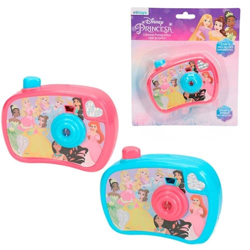 Câmera Fotográfica Infantil Princesas Color Câmera Fotográfica Infantil Princesas.\nContém 8 diferentes projeções das Princesas, ajuda a criança a criar imaginações, e um produto de alta qualidade.\nEspecificações:\nMarca : ETILUX\nTipo de material : Plástico\nCores ou Estampa : Color\nDimensões do Produto : 7,5 X 10 X 3 CM\nDimensões da Embalagem : 14,5 X 16 X 3 CM\nPeso Bruto (Gramas) : 0.048 Marca: Não Informado