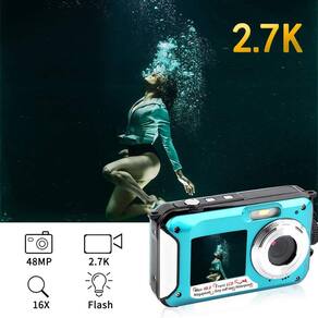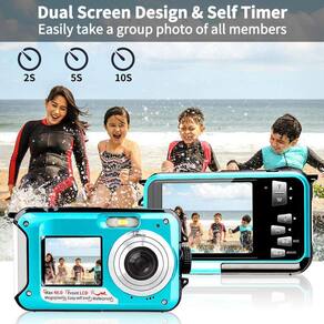 Design de tela dupla para selfies: esta câmera digital à prova d'água possui uma tela LCD de 2,7 polegadas voltada para trás e uma tela LCD frontal de 1,8 polegadas, com o temporizador automático embutido de 2s, 5s, 10s, você nunca perderá nenhuma foto de sua vida maravilhosa.