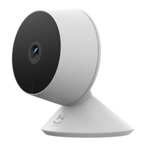 Câmera interna fixa com resolução 1080p (FullHD) e lente de 100o de angulação que capta imagens de um cômodo da casa com qualidade.