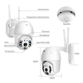 Suportes móveis suportados: ios e android Formato de compressão de vídeo: 2.0mp Interface de rede: wi-fi/802.11/b/g Visibilidade noturna até 25 metros À prova dágua/ impermeável Iluminação mínima: 1 lux Consumo de energia: 5w Possui infravermelho Alta definição: 1080p Ângulo de visão: 120º Câmera: 2 mp Lente: 3.6 mm Rotação: 355 Marca: wifi smart App: v380 Não acompanha cartão sd
