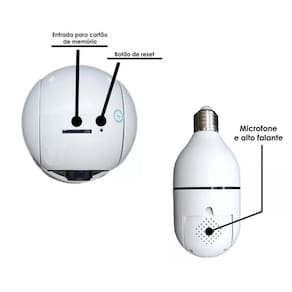 Com a Câmera Lâmpada IP Panorâmica com Rastreio você terá acesso remoto pelo celular de qualquer lugar do mundo. É o equipamento ideal para segurança residencial e comercial.