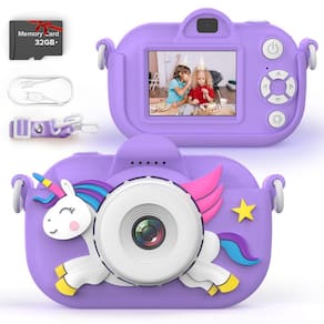 ?Proteção contra quedas e cartão TF pré-instalado de 32 GB?Nossas câmeras infantis para meninas são feitas de material ABS atóxico, que é mais seguro e confortável para a pele das crianças; equas com uma linda capa protetora à prova de choque e um cordão durável que será perfeito para meninas e meninos carregarem. Um cartão TF extra de 32 GB já está instalado na câmera, o que permitirá armazenar milhares de fotos, sem se preocupar com a falta de armazenamento! Ele suporta tirar fotos 1-2 horas após 50 minutos de carga.