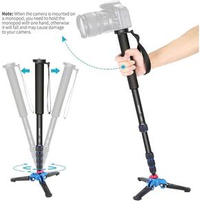- CONSTRUÇÃO SÓLIDA: O kit inclui um monopé e uma base de tripé de 3 pernas que são feitas de liga de alumínio, duráveis e sólidas; Nota: A câmera não está incluída. Nota: Quando a câmera está montada em um monopé, você precisa segurar o monopé com uma mão, caso contrário, ele cairá e poderá danificar sua câmera.